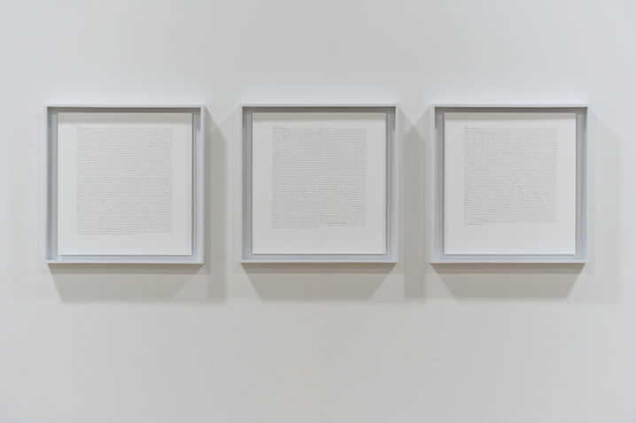 a cyanotype of ‘the passing’, a lake on a rainy day, 25 photographs/years of stone, my mother’s back, found text on water, stone, and body, my body weight in glassy stone, my mother's body weight in melting water, and thirteen sparks of light on the surface of water (rebirth).